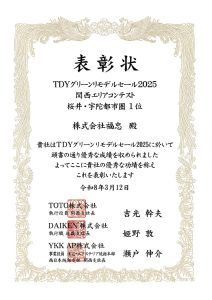 2026.04.13 ありがとうございました。4年連続の1位です。 今年もいただきました。 TDYグリーンリモデルセール2025 (TOTO・DAIKEN・YKKap) 関西エリアコンテストでした。 いつもありがとうございます。